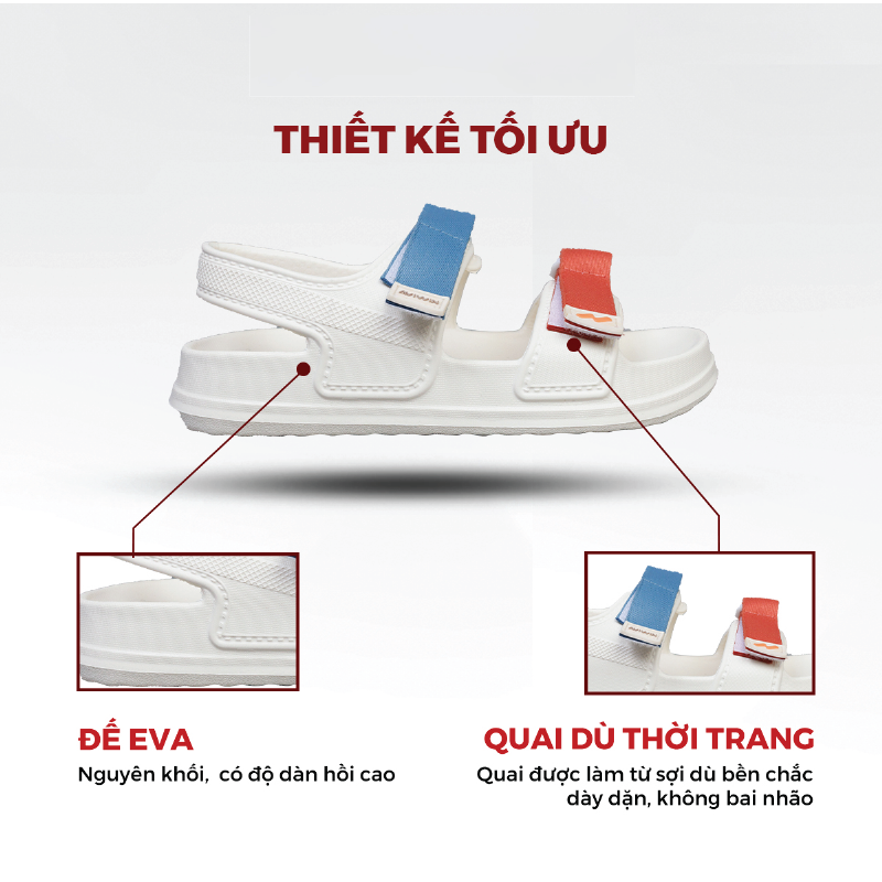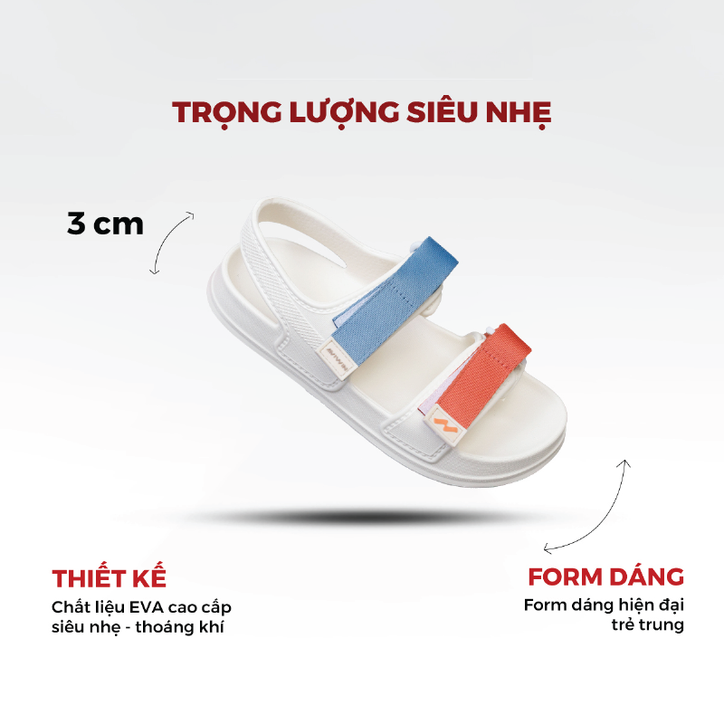 Chất liệu cao cấp: Sử dụng EVA, siêu nhẹ, mềm dẻo, có độ đàn hồi cao, chống tia UV & Ozon, giảm áp lực lên bàn chân khi di chuyển. Đặc biệt, chống thấm nước và dễ dàng vệ sinh.
