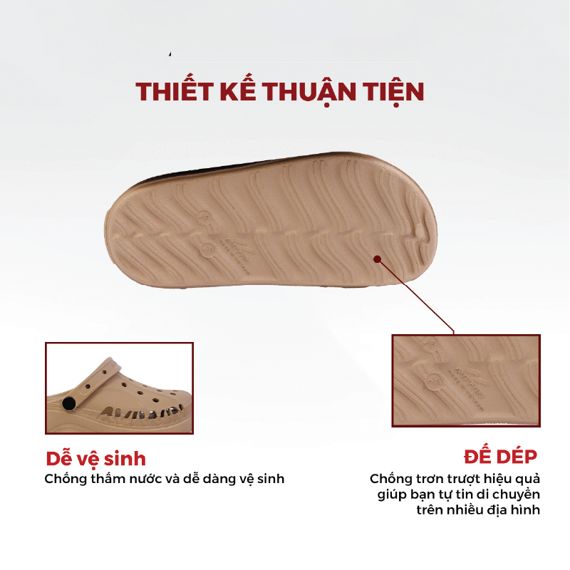 Sản phẩm được làm từ chất liệu lành tính với da, an toàn. Chất liệu đối với sản phẩm da giày là chất liệu microfiber tiệm cận da thật. Sản phẩm về dép, sục nguyên khối là chất liệu EVA cao cấp, có độ bền cao